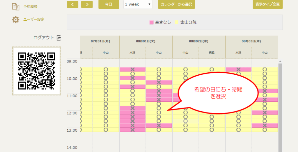 STEP4.ご希望の日にち・時間帯に予約枠をクリック