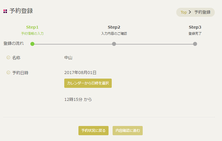 STEP5.予約内容を確認し、問題なければ「内容確認に進む」を選択