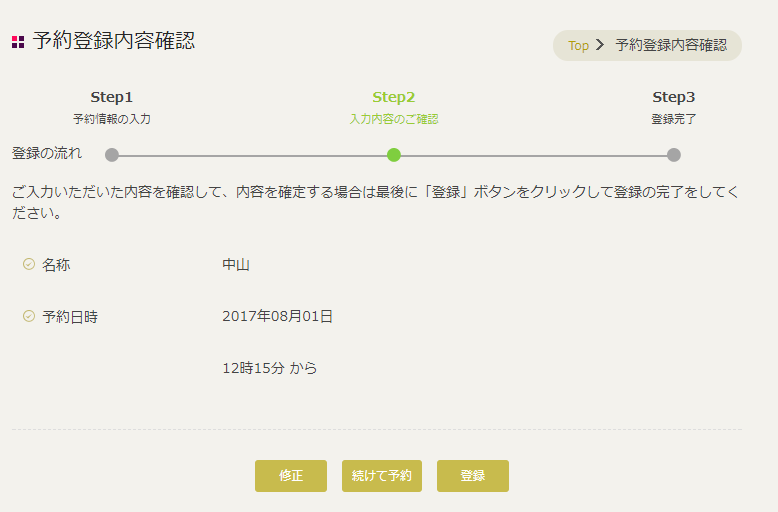 ※続けて予約を希望する場合には「続けて予約」を選択し、STEP4以降と同様に予約を行う